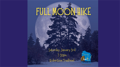 Join the Lodi Valley Chapter of the Ice Age Trail Alliance on Saturday evening, January 3rd, for a short walk—or maybe even a howl—under the glow of the first full moon of 2026. January’s full moon is often called the Wolf Moon, or sometimes the “stay-at-home” moon… but we say come out and howl with us!